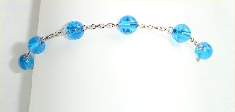 Round Blue beads on metallic chain