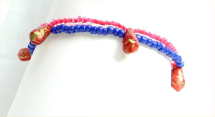2 Strands, Blue and Reads Beads with Red Tear Drop Beads