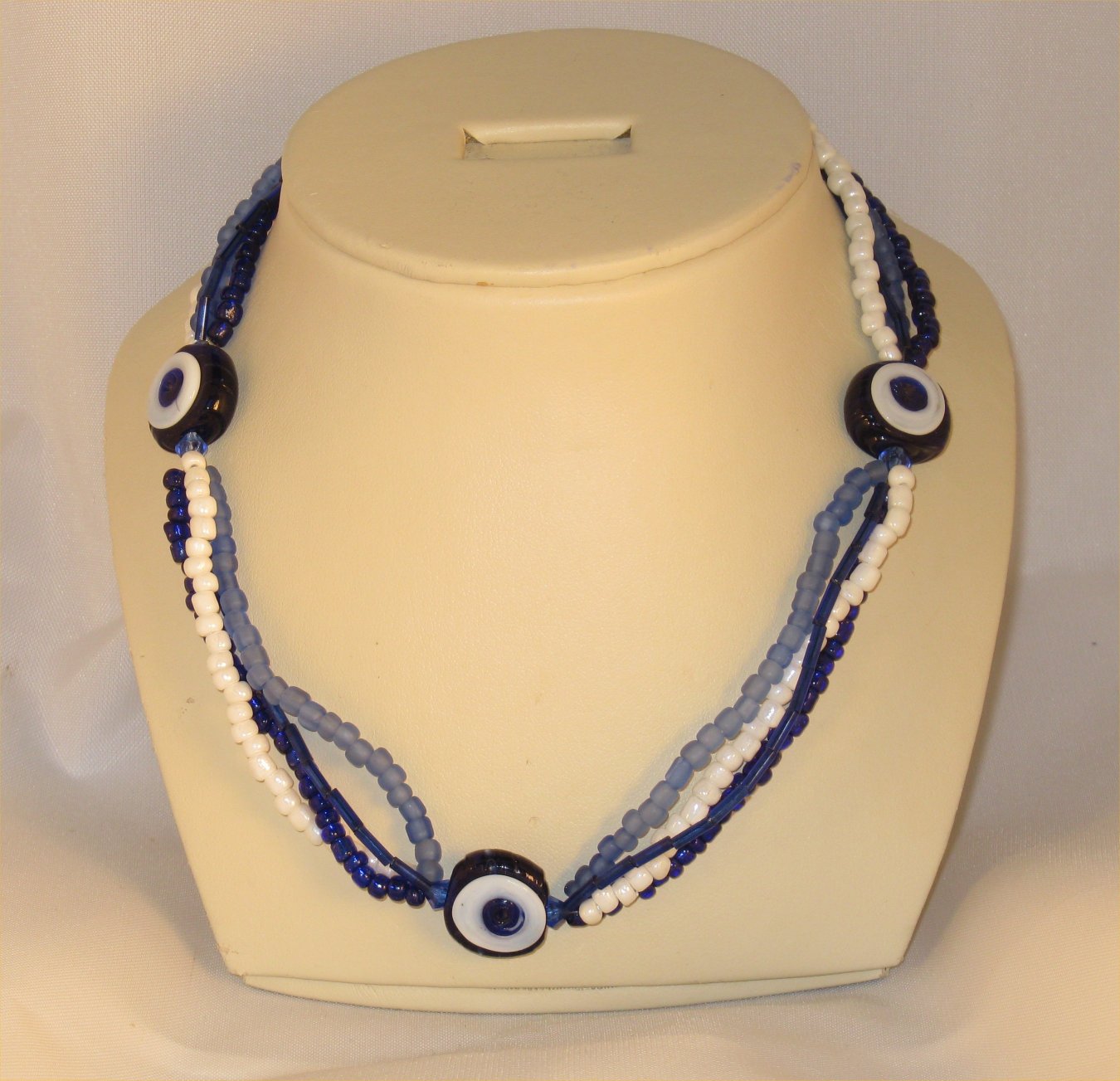 3 Big Round Eye Beads and Blue/White Seed Beads