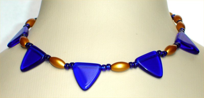Violet-Blue Triangle Shaped Beads with Gold Colored Beads